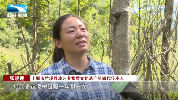 十堰市竹溪县漆艺非物质文化遗产第四代传承人 张晓莲:“1000多亩漆树是隔一年割一次,平均一年有1000多斤、2000斤漆,现在能卖200多块钱一斤,一年收入有四、五十万块钱,但是如果把它变成工艺品,附加值上升,效益翻番。”