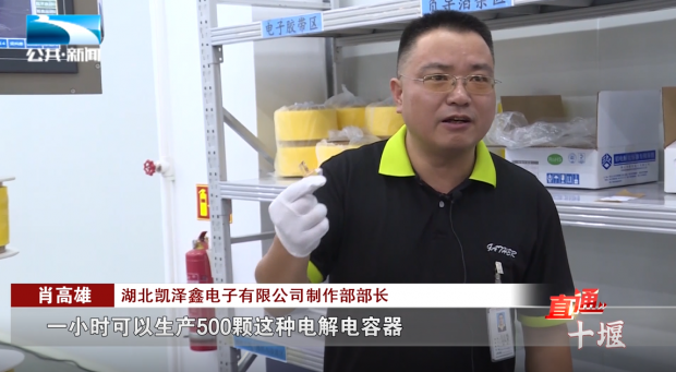湖北凯泽鑫电子有限公司制作部部长 肖高雄:“这个产品附加值比较高,像我这台设备,一小时可以生产500颗这种电解电容器。”