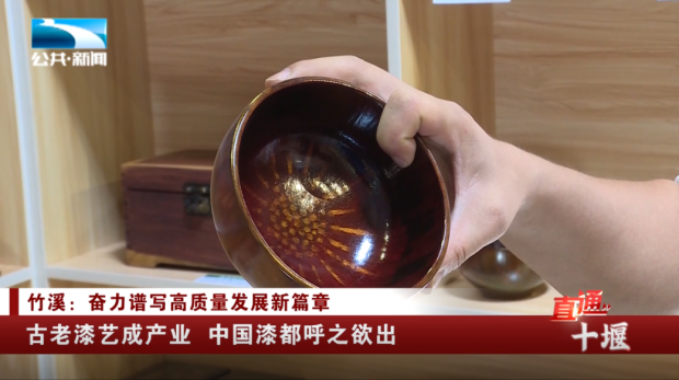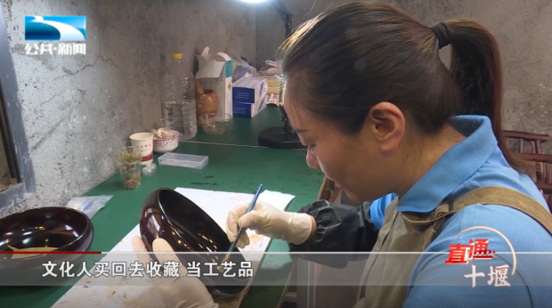 十堰市竹溪县漆艺非物质文化遗产第四代传承人 张晓莲:“1000多亩漆树是隔一年割一次,平均一年有1000多斤、2000斤漆,现在能卖200多块钱一斤,一年收入有四、五十万块钱,但是如果把它变成工艺品,附加值上升,效益翻番。”