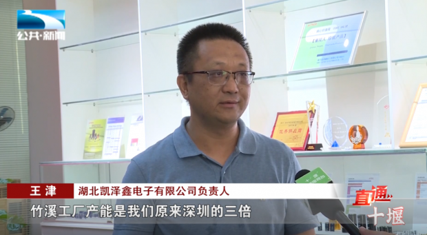 湖北凯泽鑫电子有限公司负责人 王津:“竹溪工厂是我们原来深圳的三倍,因为在这边人力资源、厂房面积,我们都得以发挥出来。”
