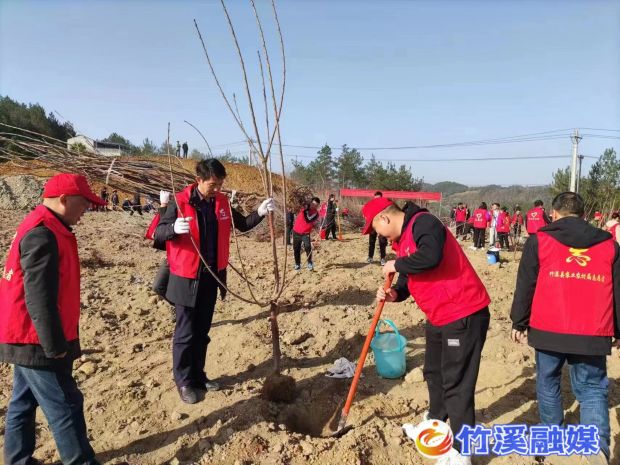 该中心领导干部来到水坪镇纪家山,植树现场繁忙有序,大家分工协作、填土踩实、干劲十足。经过两个多小时的劳动,一颗颗树苗迎着春风昂然挺立,展现出蓬勃生机。