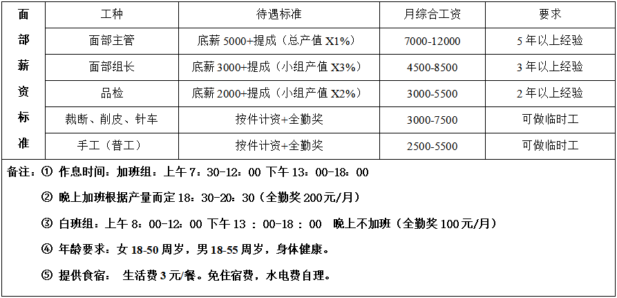 备注:以上招聘岗位一经正式录用,公司均提供五险一金、免费工作餐、住宿、薪资可根据自身实际工作能力面议。