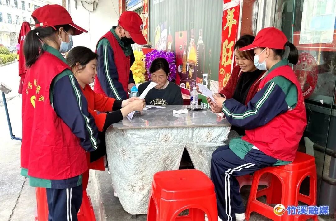 该校学生志愿者们来到汇湾镇小河口村,向家长们发放县委文明办、县新时代文明实践中心、县民政局联合宣发的《竹溪县2023年清明节文明祭祀倡议书》,提醒大家要严守规定、安全祭扫,倡树新风、文明祭祀,保护环境、绿色祭祀。