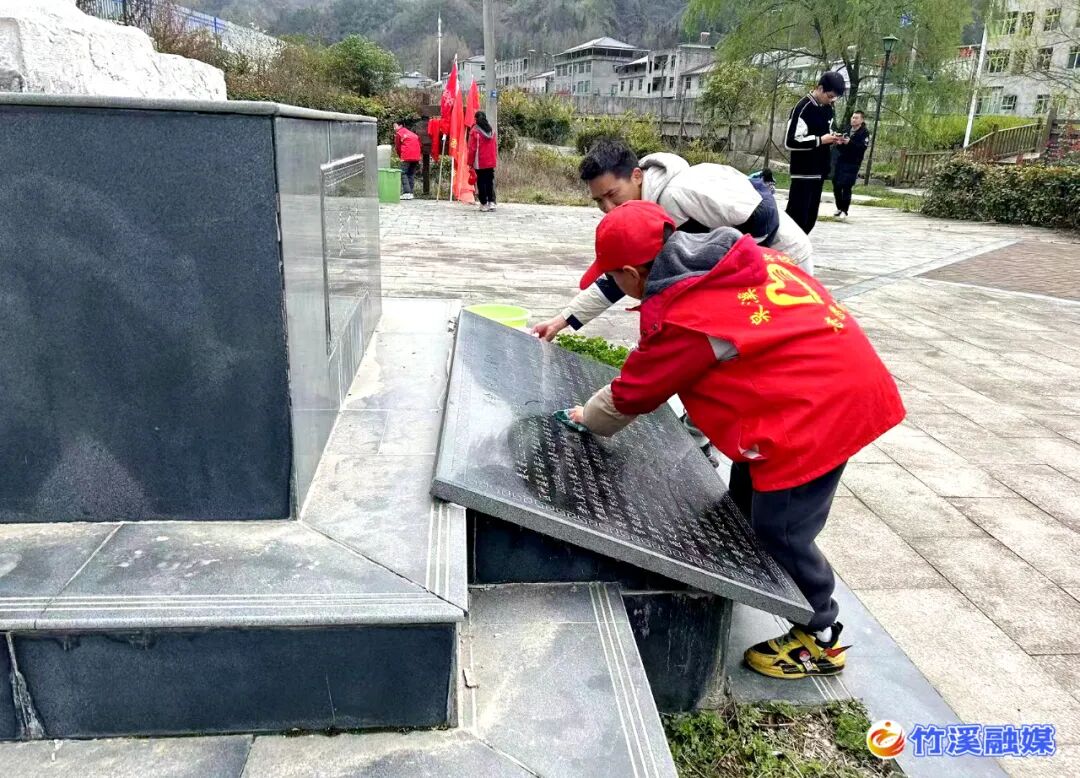 仪式结束后,干警们拿起抹布、扫帚、铲子,对烈士陵园纪念碑进行了清洁,对周边环境进行了清扫。干警们还向附近居民发放了《竹溪县2023年清明节文明祭祀倡议书》,呼吁大家弘扬文明新风、倡导文明祭祀,采用简约、绿色、环保的方式寄托哀思。