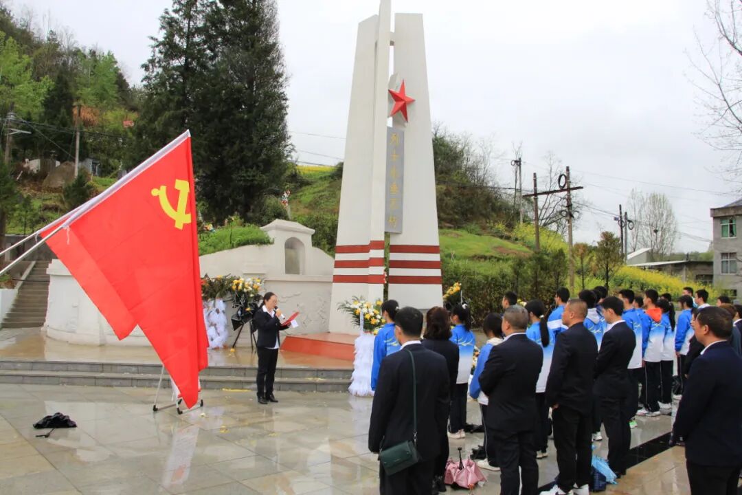 4月4日上午,绵绵细雨,县城关中学党员干部及团员共60余人前往县河镇锣鼓洞爱国主义教育基地,开展“缅怀英烈 争当先锋”清明祭英烈活动。