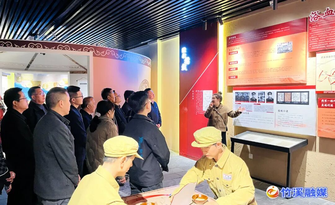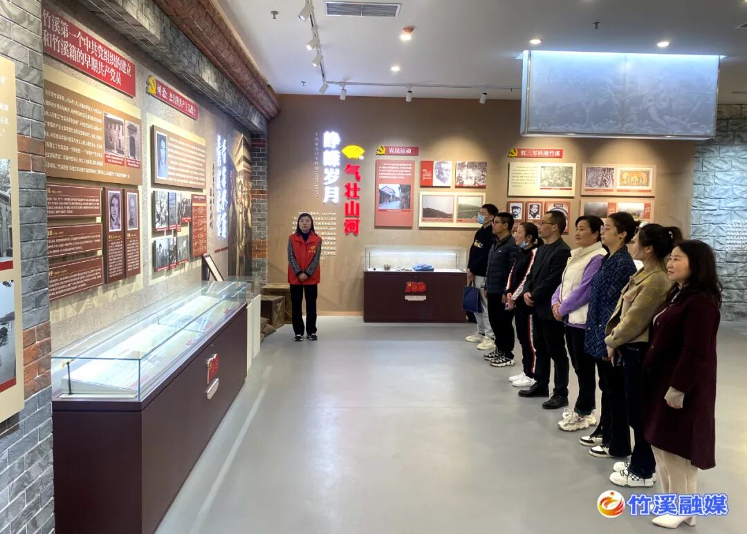 在竹山县擂鼓镇烟墩子锣鼓洞战斗纪念馆,在讲解员的带领下,大家仔细观看珍贵的历史图片、重要文献等物品,学习锣鼓洞战斗遗址的红色事迹,为先烈付出的艰辛和不怕牺牲的顽强斗争精神深深震撼感动。