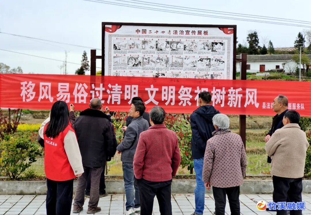 活动中,志愿者为村民们宣讲了家庭赡养及孝道方面的法律法规和《竹溪县2023年清明节文明祭祀倡议书》,倡导村民要树立文明祭扫、绿色环保的新风尚,采取网上祭祀、鲜花祭祀、家庭追思会、村民共祭、集体公祭等文明祭扫方式,寄托对已故亲人及先贤的哀思,自觉摒弃陈规陋习,营造文明低碳祭扫的社会氛围。要厚养礼葬,树立节地生态的丧葬新风尚,提倡老人在世时多尽孝道,长者逝去后,不铺张浪费,不互相攀比,从俭治丧。党员干部要以实际行动带头示范,做好文明低碳祭扫,从注重实地实物祭扫方式转移到以精神传承方式上来。
