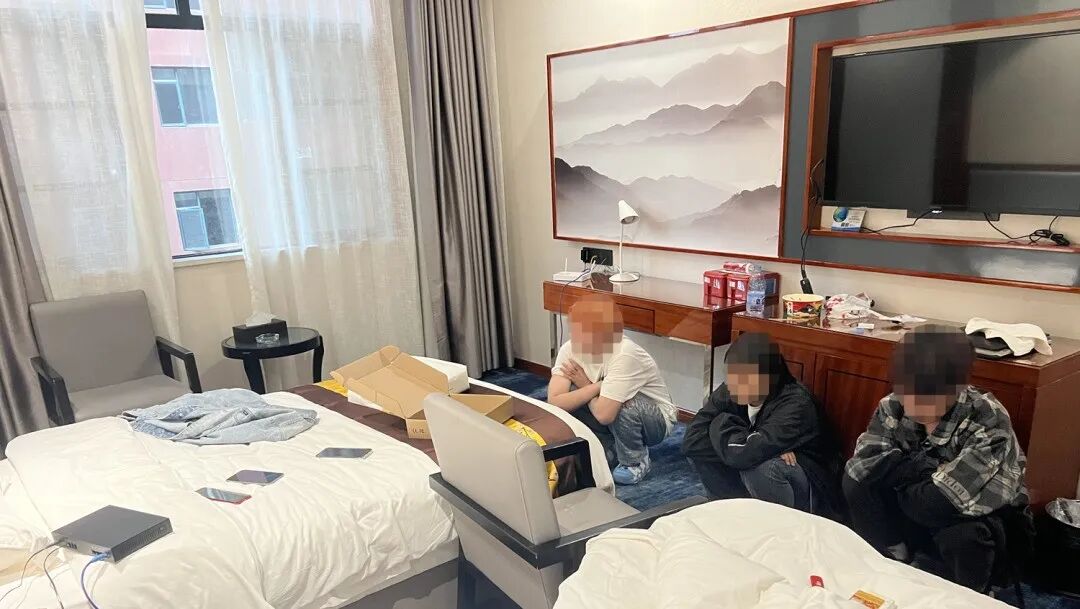 18时许,民警隐蔽进入该酒店,敲开房门之后,只见2男1女3名青年正在摆弄着“GOIP”设备。