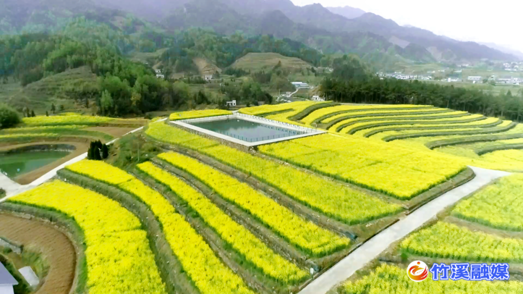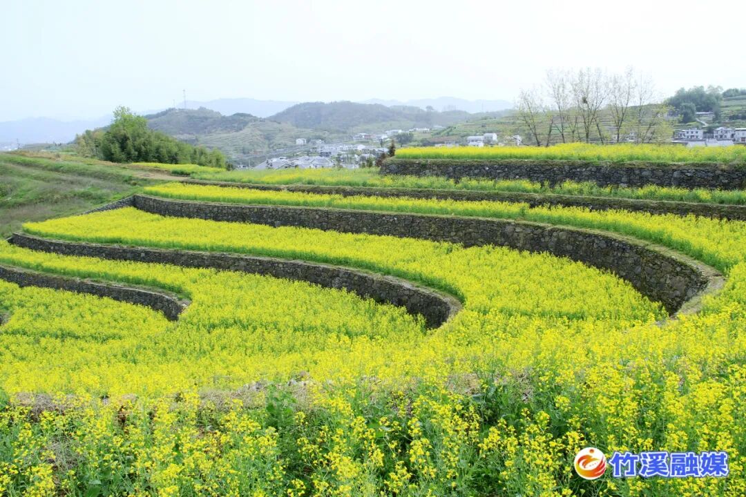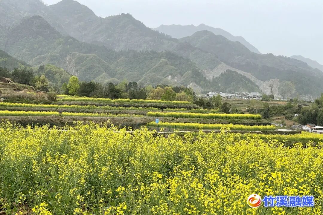 此时的竹溪乡间田野,一簇簇、一畦畦,金黄的色彩,铺满了山间、田舍、沟渠。这明媚绽放的颜色,在春风的驿动里,伴着声声鸟鸣里的梦,在如诗如画的竹溪山间缓缓流淌。