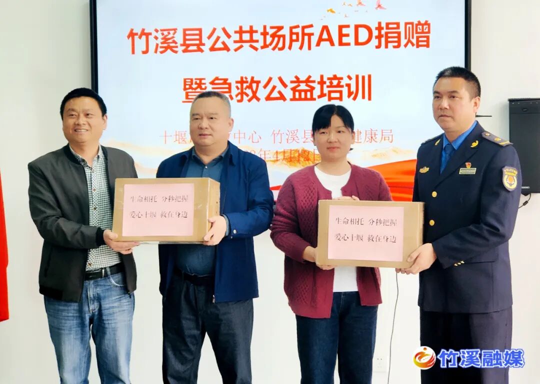 (全媒体记者 李遥 通讯员 俞丽丽)4月12日下午,竹溪县公共场所AED捐赠仪式和急救公益培训在竹溪一中举行。十堰市急救中心代表市卫健委向我县定向捐赠两台自动体外除颤器(以下简称AED),并联合县120指挥中心举行急救公益培训。竹溪县第一高级中学、竹溪县园林局两家单位现场接受捐赠。