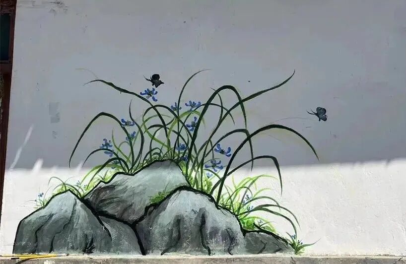 “你们画的莲花好逼真啊!”“鱼也画活了!”近日,县河镇明家湾村的几位村民围观村里正在施工的墙画时赞不绝口。