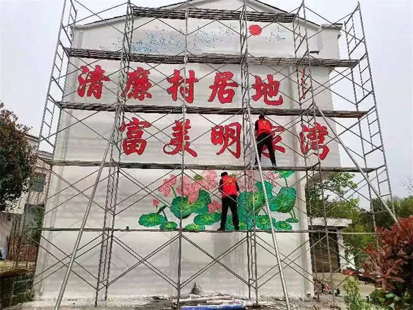 此次活动以墙画的方式,宣传清廉理念、倡导清廉文化、弘扬清风正气。墙画以莲喻“廉”,以美术化育心灵,倡导推动“清廉”风尚,美化乡村宜居环境,助力乡村振兴。(柯美新 梁秋菊)