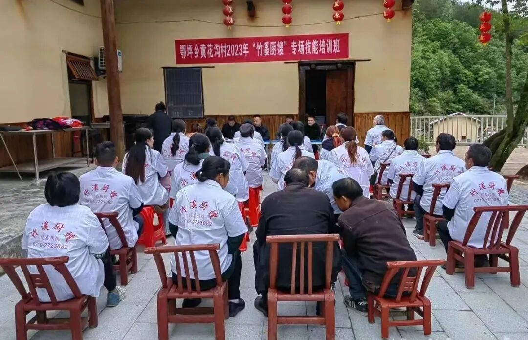 近日,鄂坪乡黄花沟村的一家特色农家小院内,数十名身着厨师服的村民正专心致志地倾听厨艺大师讲解烹饪技巧,不时传出阵阵热烈的掌声。