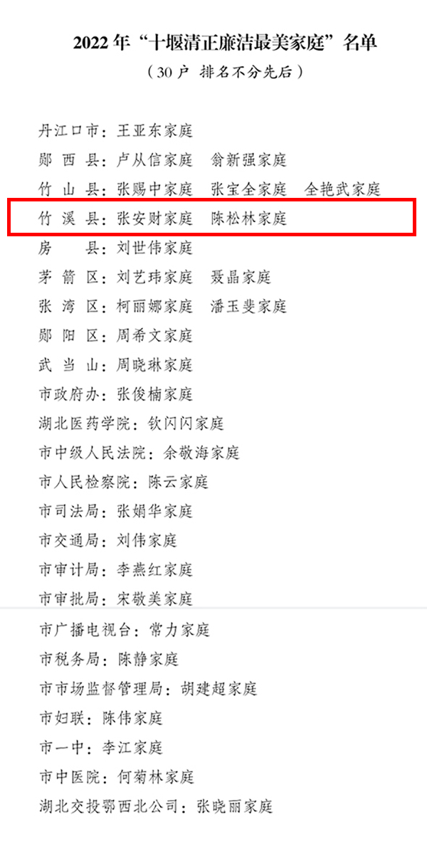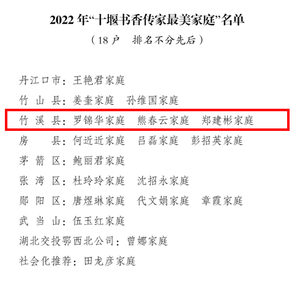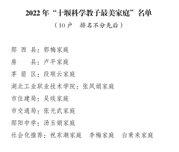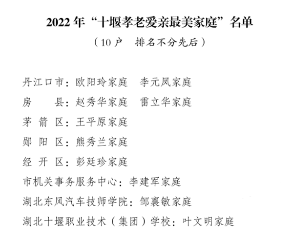 “十堰最美家庭”名单