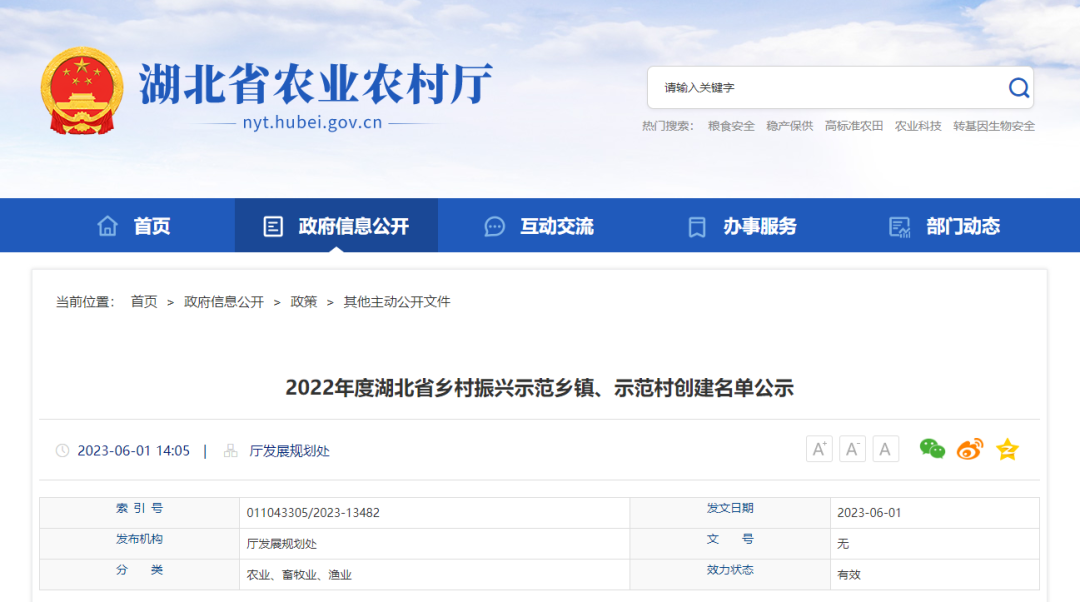 襄阳市:襄州区双沟镇、保康县马桥镇、谷城县五山镇、枣阳市王城镇