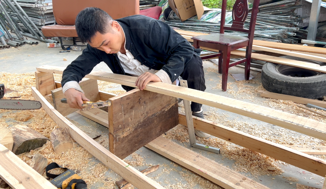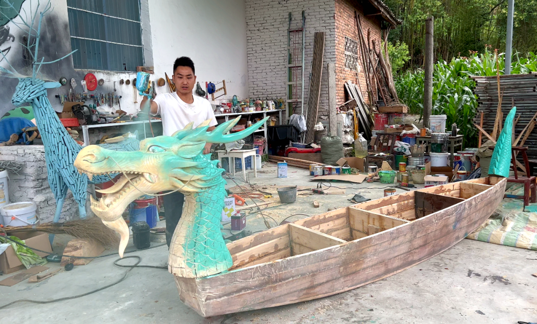 在制作龙舟这件事上,甘露也不是孤独的。来自蒋家堰镇的吴涛积极加入造龙舟的行动中,成了甘露并肩作战的亲密战友。