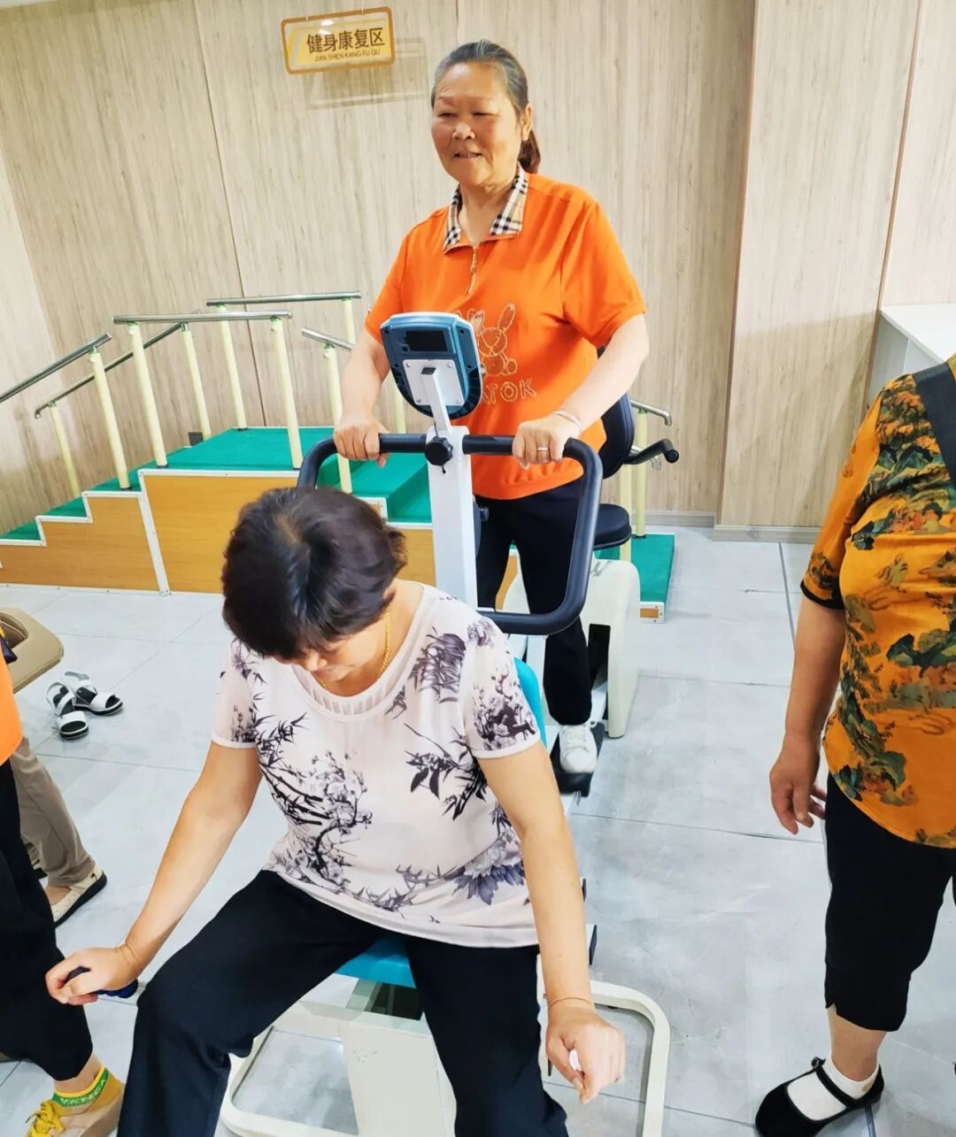 食堂还配备一名村医担任健康指导员,通过开展义诊咨询、测量血压血糖等方式,为老人提供更多人性化的健康服务;在食堂二楼分区设置了棋牌娱乐室、健身康复区,安装了按摩椅等设施,为老人提供全方位的服务,满足老年人物质和精神双重需求,让老人们老有所依、老有所乐。