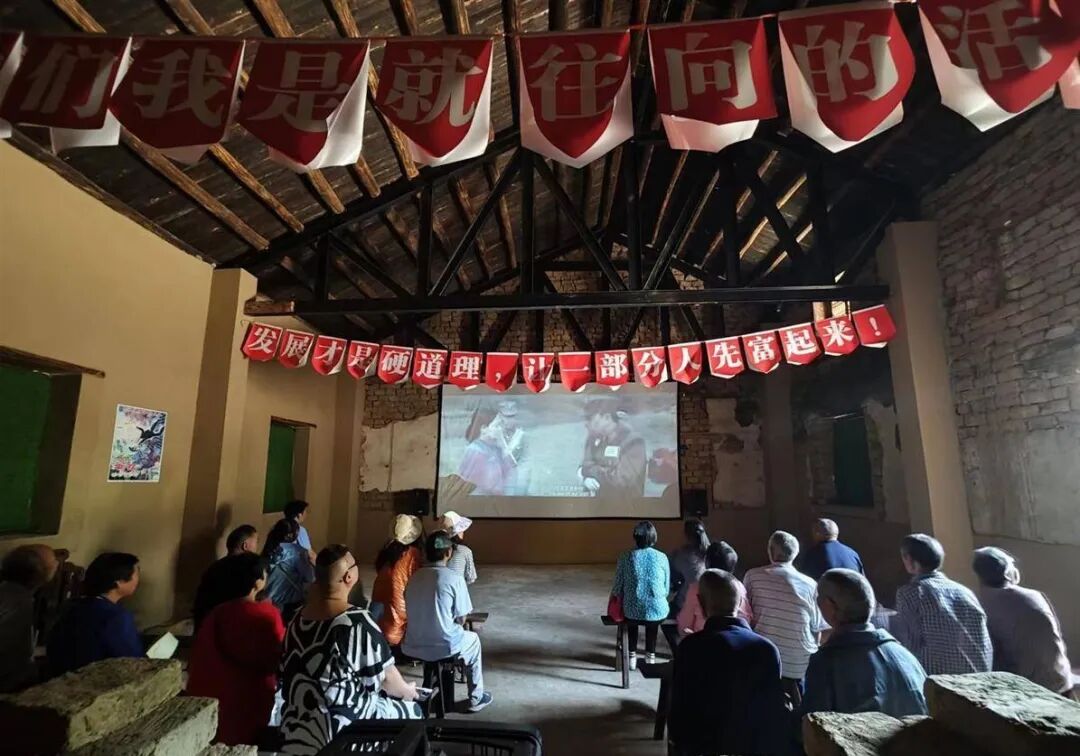 红色电影院是电影小村的一大看点,位于沈凯文化广场以南,与数字影院相呼应。在红色电影院里,白色幕布、放映机、小板凳、放映员……通过一个个怀旧道具,顿时引发了在场所有人的记忆共鸣。该影院真实还原上世纪80年代的影院观影风格,放映员通过手动式电影放映机,在墙上投放出若隐若现的电影画面,让时光仿佛回到四十年前,重温那段刻在心底深处的难忘岁月。这里还播放沈凯创作的电影文学作品《伞花》《阿佳尔历险记》等红色电影,采取轮回播放、免费观看,进一步提升观众的民族自豪感和爱党爱国情怀,使人们真正感受到红色文化惠民暖人心。