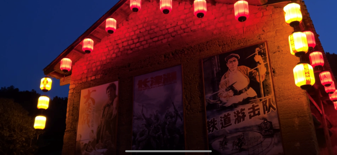 傍晚时分,夕阳余晖下的肖家边村愈发光彩夺目。走进电影小村,《大决战》《长津湖》《铁道游击队》《封神》等海报文化墙成为肖家边村的一道靓丽风景线。