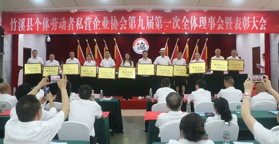 近日,竹溪县召开个体劳动者私营企业协会第九届第一次全体理事会暨诚信企业、诚信个体工商户表彰大会,中竹建设集团有限公司等79家企业、竹溪县御膳房等72户个体工商户被分别授予2020-2022年度竹溪县“诚信企业”和“诚信个体工商户”荣誉称号。