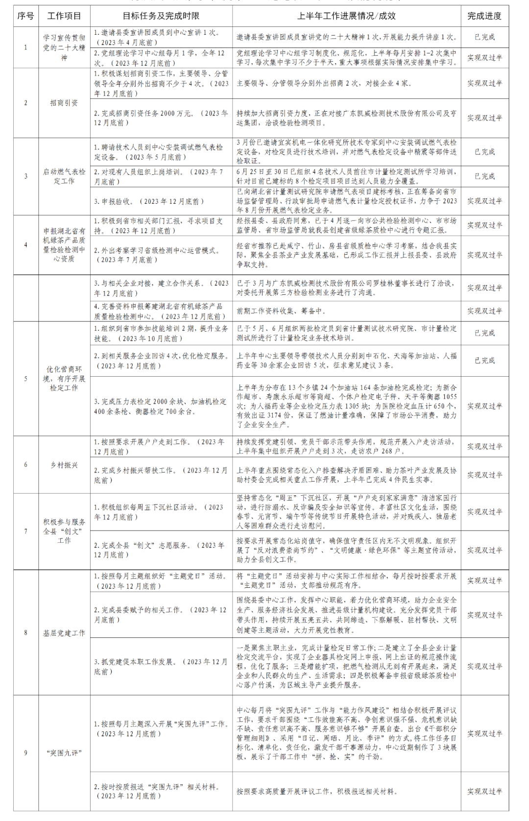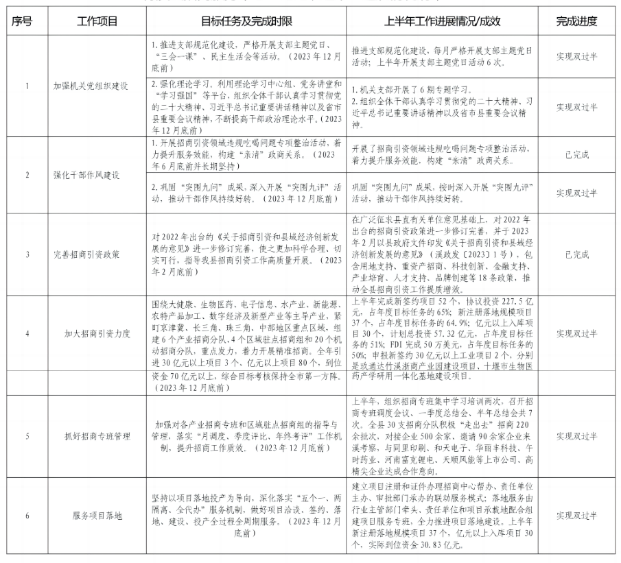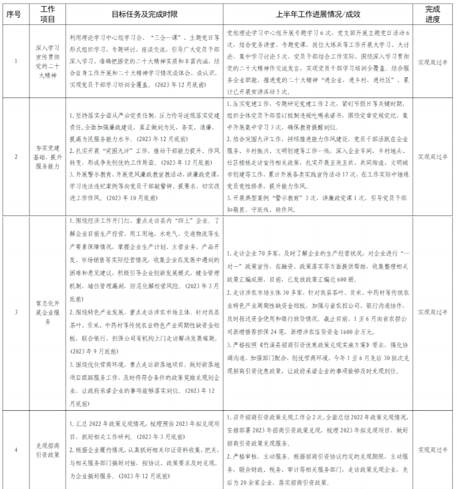 2023年半年工作进展情况