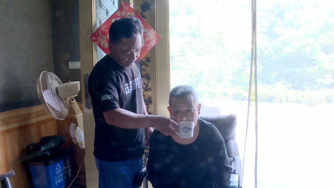 2019年,大哥周端贵突发中风,身体瘫痪无法动弹,完全丧失了劳动能力和生活自理能力。弟弟周锋看见躺在床上无法动弹的大哥忍不住心痛,“大哥这辈子命苦,妻子早逝,两个儿子又常年在外打工,没人照顾,他和我是亲兄弟,我照顾他是应该的。”从那之后,周锋便坚定了照顾亲兄弟的决心,主动承担陪护无怨无悔。