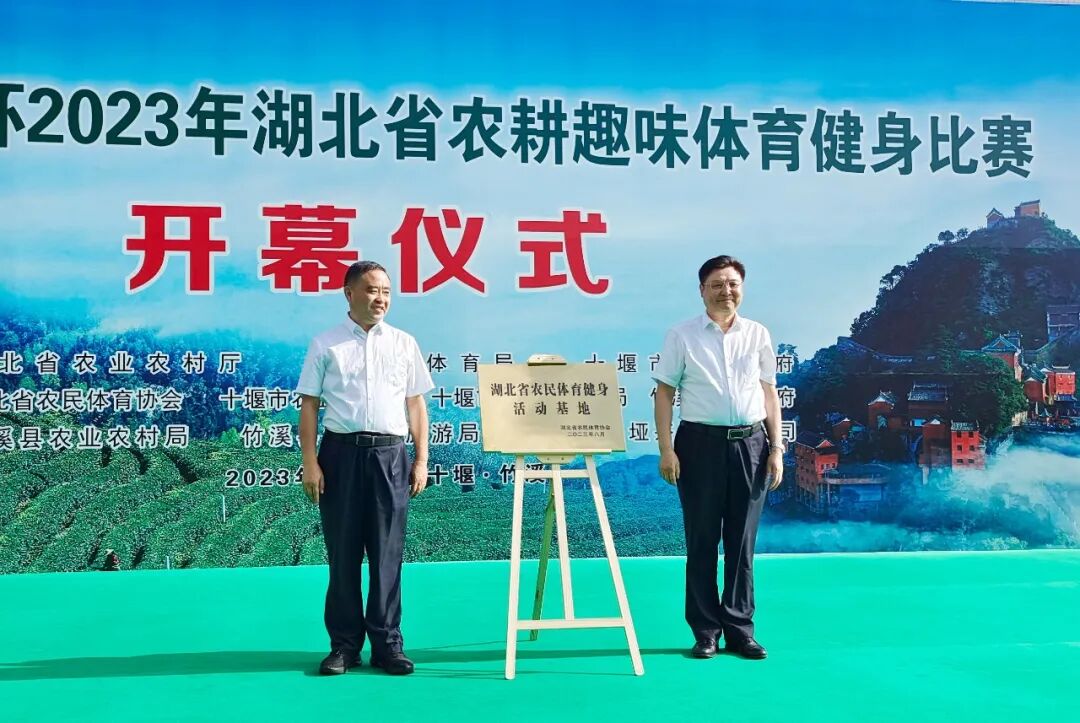 开幕式上,陈志勇为竹溪龙王垭茶场授予“湖北省农民体育健身活动基地”牌匾,并宣布比赛开幕。