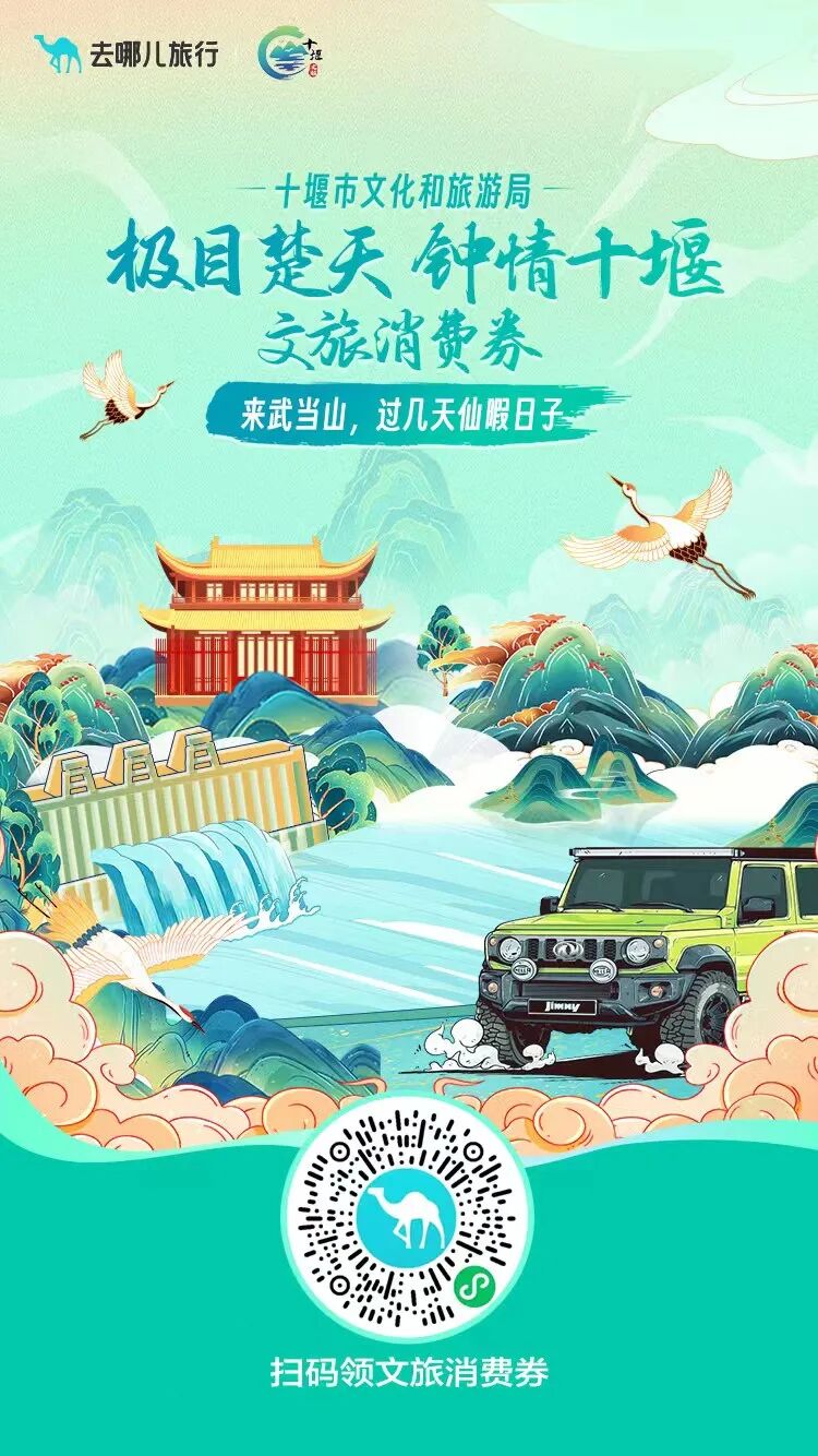 十堰市旅游一卡通专属消费券“满100减20”(武当山风景区仅限十堰地区市民和长期在堰的外地市民预约使用)。