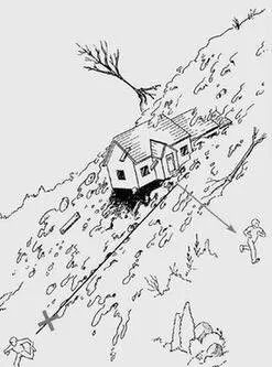 2.当处于滑坡体中部无法撤离时,可以找一块坡度较缓的开阔地停留,但一定不要和房屋、围墙、电线杆等靠得太近。当无法继续撤离时,应迅速抱住身边的树木等固定物体。