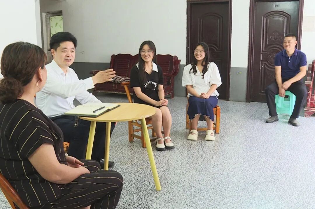 8月7日下午1点10分,柯尊勇在十八里长峡管理局双桥村双胞胎家庭王长琼家座谈
