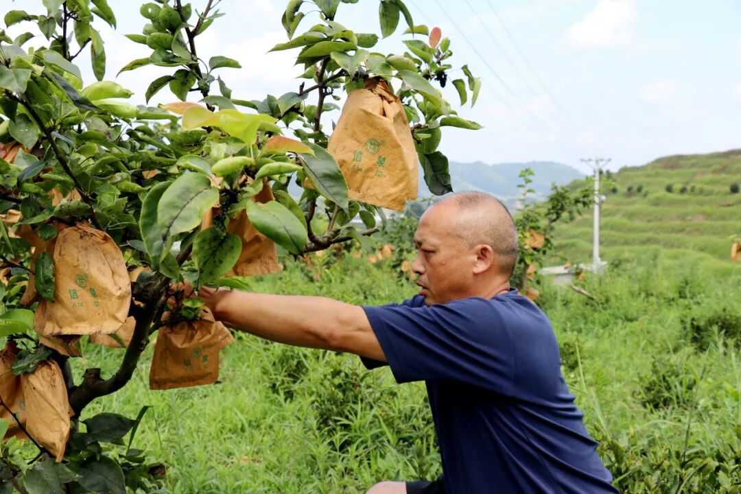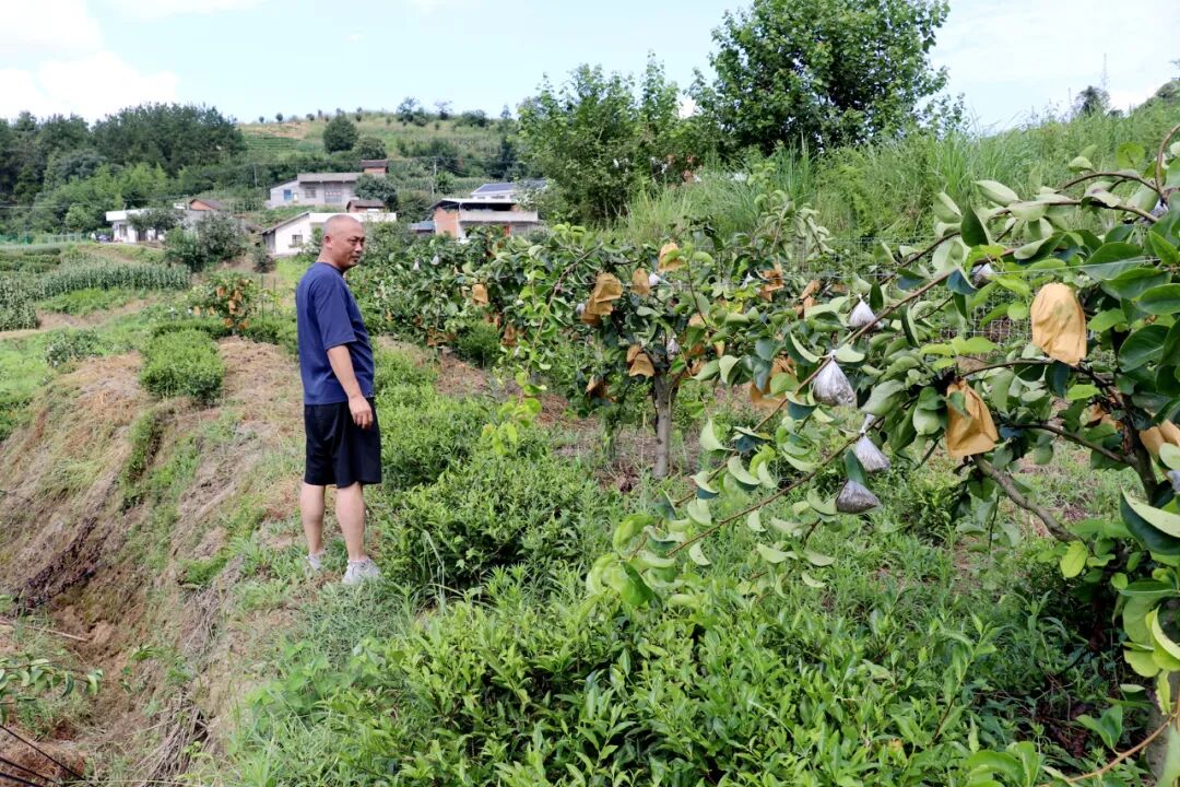 猫子沟村共201户793人,群众居住分散,基础设施落后,缺少主导产业支撑,群众增收门路少,村民经济收入靠打工为主。在这样一个基础薄弱的现状下,村党支部书记李新华瞄准了该村山场资源辽阔的优势,因地制宜,带领村民发展起了丰水梨产业,通过实行果树嫁接和茶园套作等模式,才有了现如今百余亩果园大获丰收的场景。