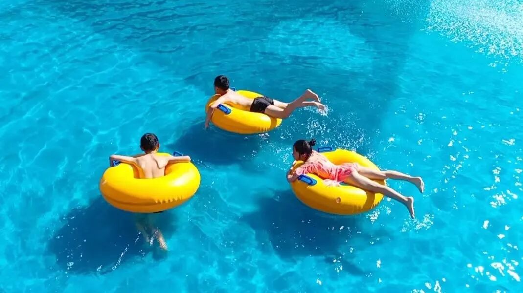 “随着天气越来越热,现在每天游泳的人流量还可以,单日游客量近500人次,销售额有1万多。”汇龙湾水上乐园总经理龚国安介绍道。