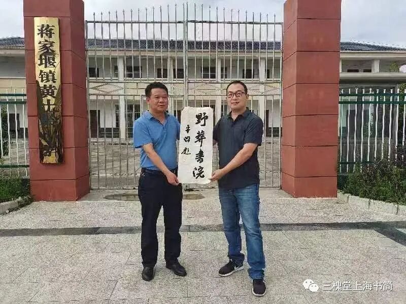 蒋家堰镇党委主要负责人与作家王成伟(右)在野莽书院定址