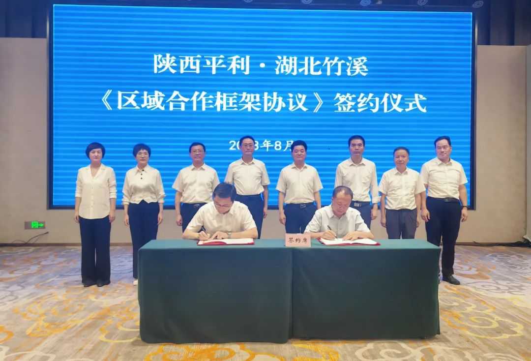 考察期间,县长许庆一同平利县长陈华、镇坪县长陈佳斌分别签订了区域合作框架协议。