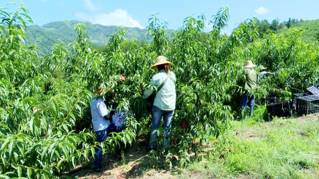 在现场,记者看到王庆聘请了不少村民前来务工,大家忙着分拣、称重、包装、搬运、装车,现场忙而有序,好山好水孕育出的有机黄桃源源不断地“出山”。