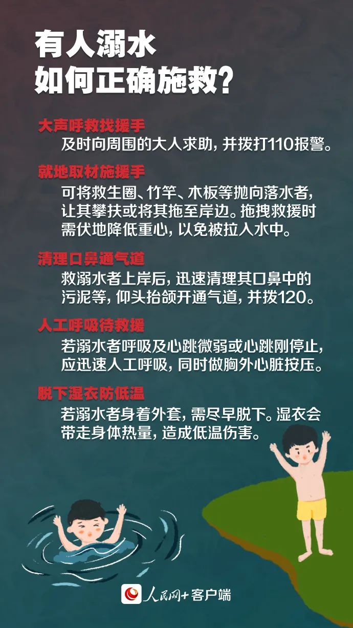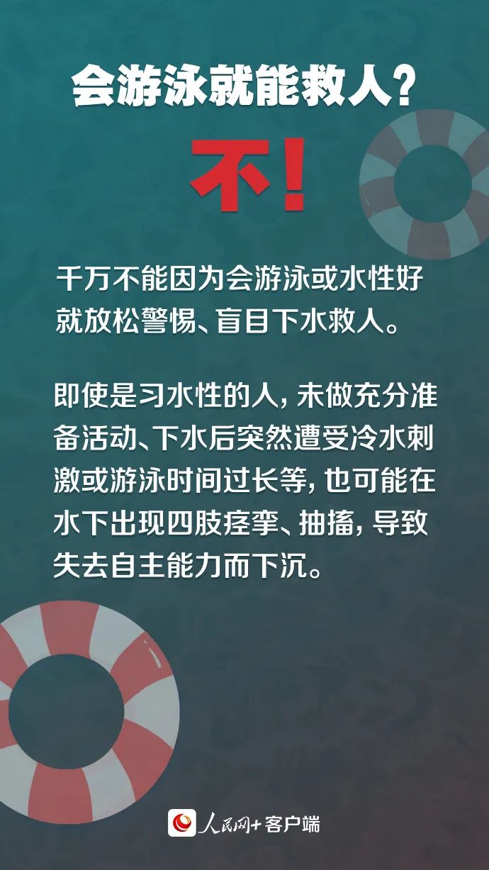 3.请您告知子女,得知其他同学(朋友)去野外水域玩耍、游泳时,要立即劝阻并及时告知大人;若遇到有人溺水时,不擅自施救、不手拉手施救,要智慧救援,立即寻求成人帮助,拨打求救电话。当您看到有孩子在危险水域游泳、玩耍时,不管是不是自己的子女,都请您停下脚步劝阻、提醒,您的这一行为或许在无形中能够阻止溺水事故的发生。