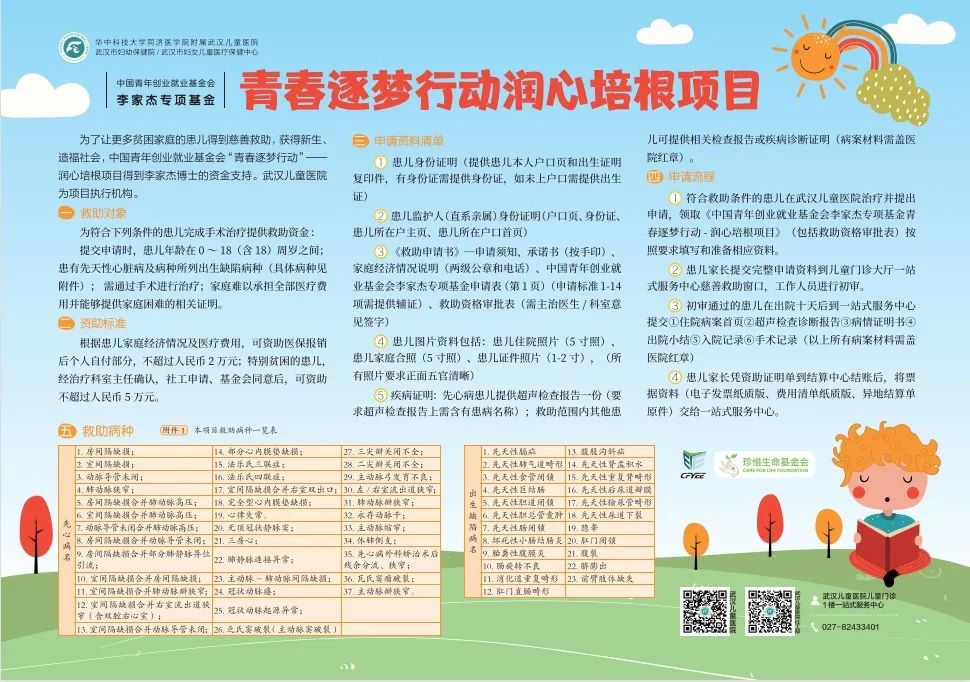 青创李家杰专项基金“润心培根”项目:先心病、出生缺陷(泌尿、消化、呼吸系统)救助。0-18(含18)周岁困境患者最高可以获得5万元资助。
