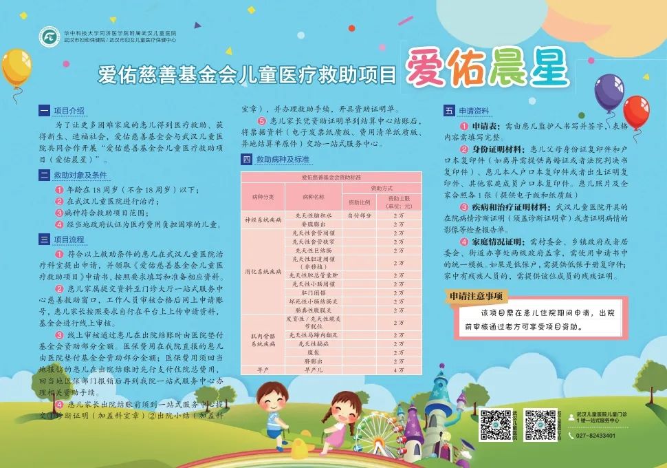 先心病(全病种)、血液病(4种)、恶性肿瘤(6种)救助5000元-4万元不等。