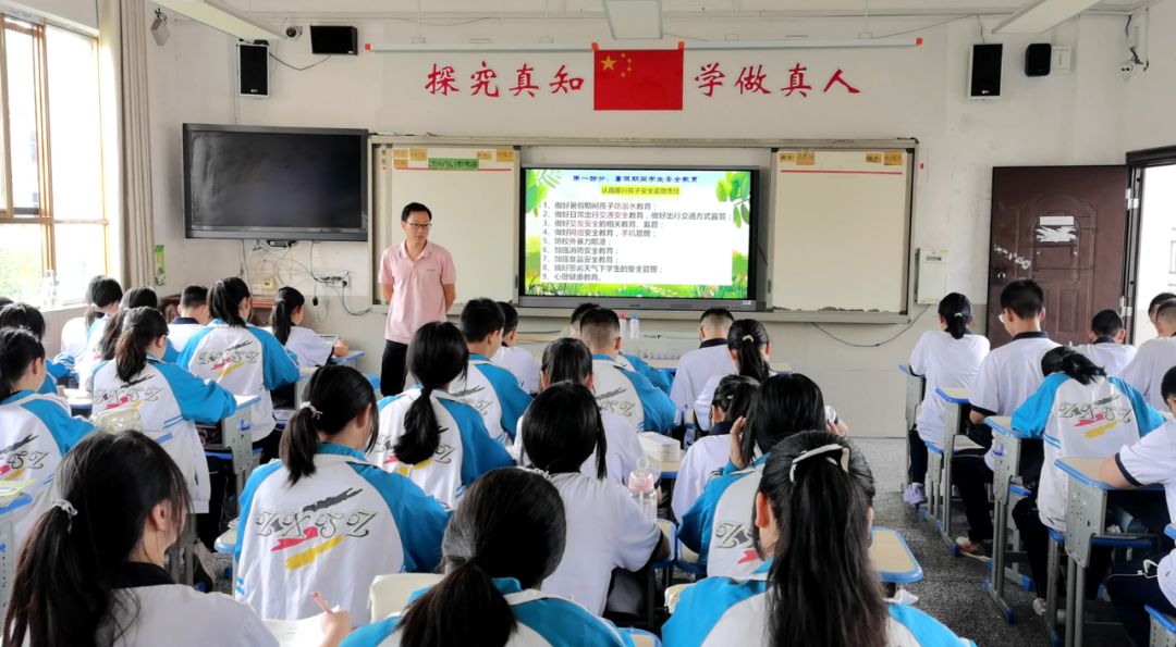 为给同学们营造一个快乐又有意义的开学氛围,县实验中学也精心准备了“开学第一课”。通过开展主题班会、发表感言等形式,在普及安全知识的同时,引导学生树立新学期新目标。