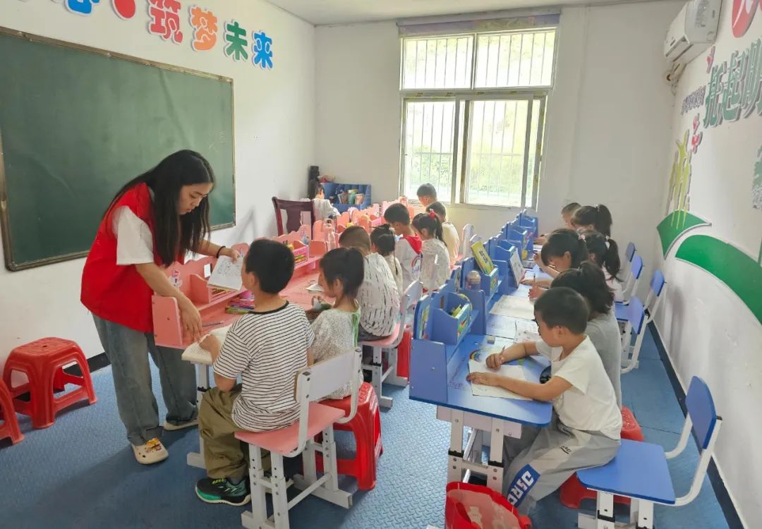 同时,该镇各村“爱心课堂”不断深化课堂内容,以作业辅导为基础,围绕爱国教育、心理健康、安全教育、讲卫生爱环境等内容,开设主题公益课,致力培养学生积极向上的主流价值观。“爱心老师”坚持“寓教于乐”的关爱理念,积极开设个人才艺展示、课外文体活动等课程,全方位提升留守儿童的知识、品德、才艺等方面的能力水平,逐步形成以夯实学业为基础、培育兴趣为重点、陪伴成长为核心的关爱模式。“村里‘爱心课堂’办得真好,每年暑期孩子的学习和安全都能得到保障,主题公益课辅导课对孩子成长有很大帮助,真正解决了我们这些家长的后顾之忧。”四条沟村村民谭梅说道。