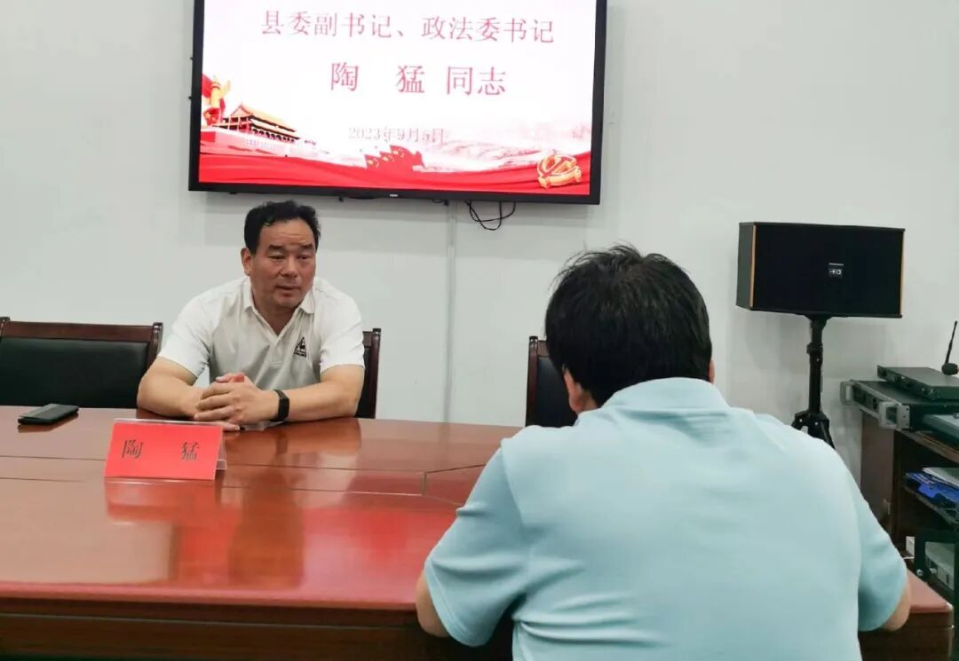 9月5日,县委副书记、政法委书记陶猛在县社会治理中心值班接访;在县委办三楼会议室会商重点信访维稳事项,研究化解稳控措施。