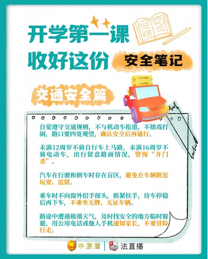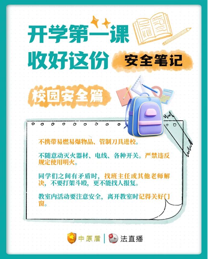 秋已至,夏未央。各中小学生暂停的校园生活已重启,安全无小事,事关你我他,提高安全意识十分重要。开学了,有哪些安全事项需注意?请大家收好这份开学安全指南!