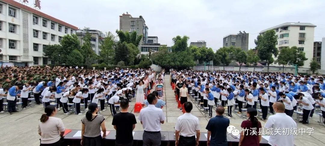 9月7日上午,竹溪县城关中学举行2023年秋季开学典礼暨第39个教师节庆祝表扬大会。全校1600余名师生参加大会。