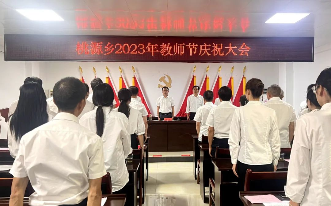 会议在庄严的国歌声中拉开帷幕。宣读了《关于表扬2023年桃源乡“优秀教师”“优秀班主任”“优秀管理干部”和“师德先进个人”的通知》,为优秀教师代表颁奖。该乡党委主要负责人代表乡党委政府向辛勤耕耘在教育战线上的广大教师、教育工作者和离退休老教师表达了节日的问候,希望全体教师做热爱教育事业的无私奉献者。(郭聪)