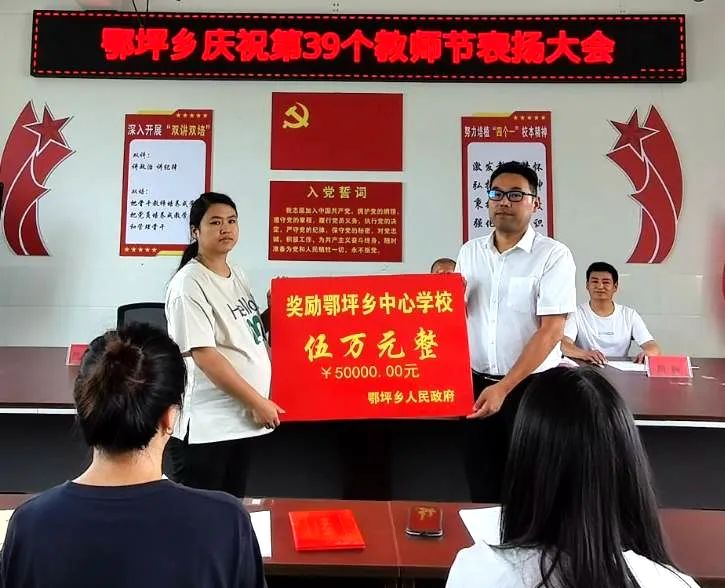 会议总结了全乡过去一学年的教育教学工作,查找了不足,明确了新学年的打算。宣读了市、县、乡级优秀教师、优秀班主任及师德先进个人的表扬文件,并为获奖教师颁发了荣誉证书。该乡党委政府为学校颁发教学奖励资金5万元,希望全体教师继续发扬爱岗敬业、无私奉献的精神,不忘初心、努力工作。