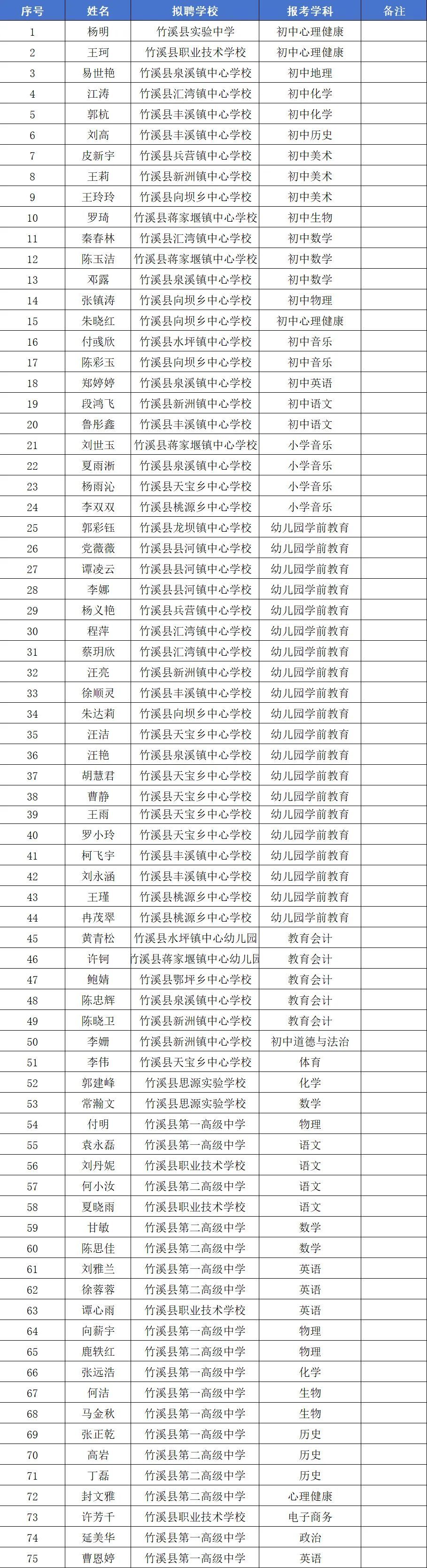 附:竹溪县2023年公开招聘幼教、义教、高中阶段学校教师及教育会计拟聘用人员名单
