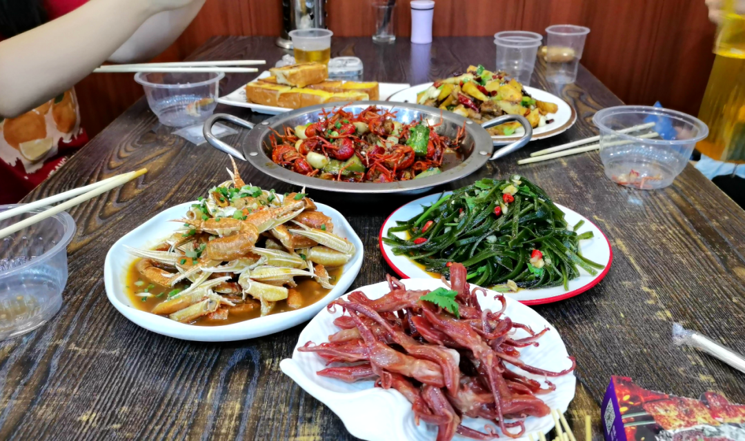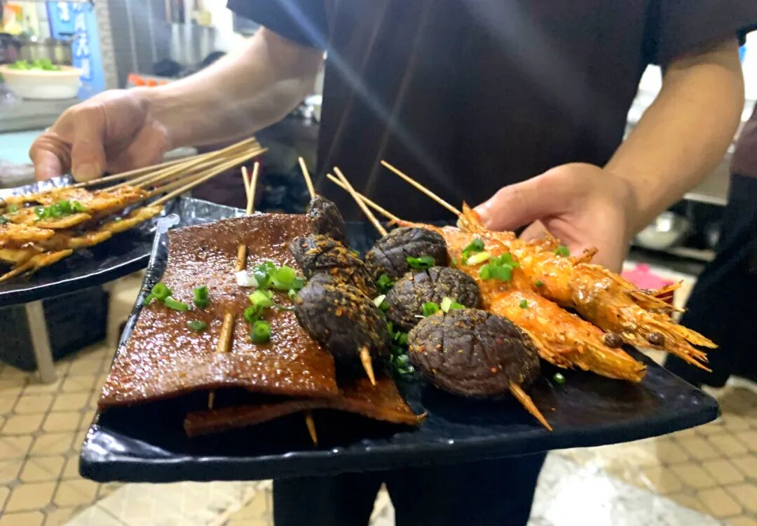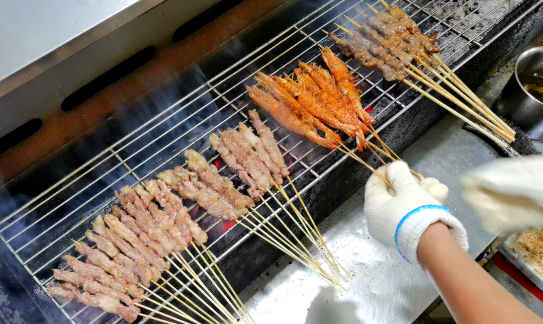 鑫磊夜市的老板娘介绍:“我们这家店经营14年了,从摆小摊到开小店再到盘下现在这家大店,客流量一直在稳步增加。这里烧烤、凉菜、小龙虾、烤鱼、炸串应有尽有,品种丰富,味道也齐全,有蒜香、麻辣、孜然等多种味道可以选择,所以吸引了非常多的回头客。我们一年四季各有特色食品,夏季一般是小龙虾,现在是吃蟹钳、香辣蟹的季节,到了冬天还有牛杂火锅。”