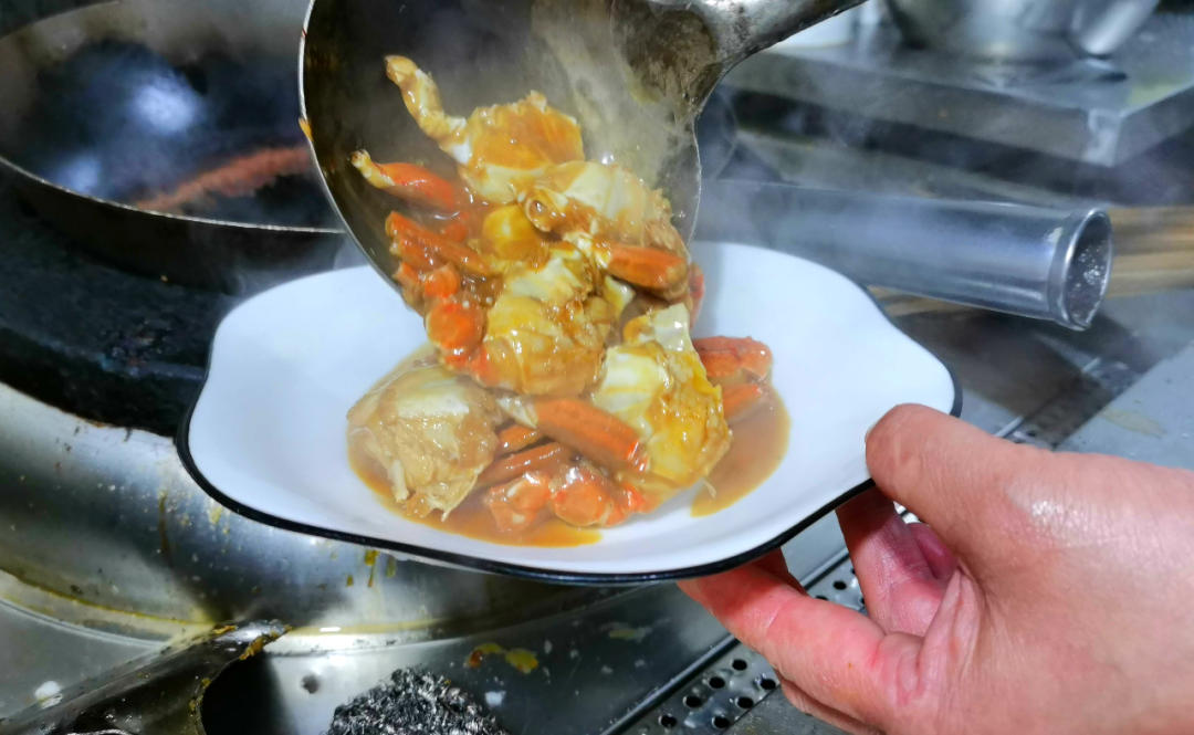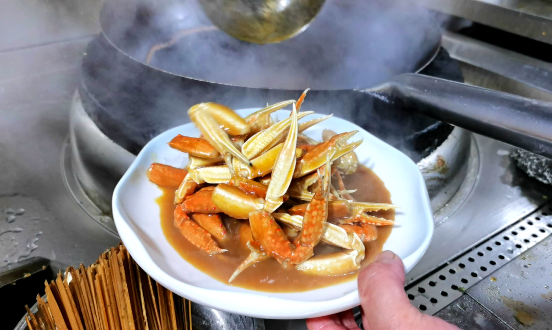 正在就餐的顾客说:“我和伙伴们经常来这家夜市,这个季节我们一般会点他家的蟹钳,外面裹着一层秘制酱汁,里面的肉质十分紧实,非常入味。蟹身膏满流黄,肉质比较肥嫩,还很新鲜,回味甘甜。”