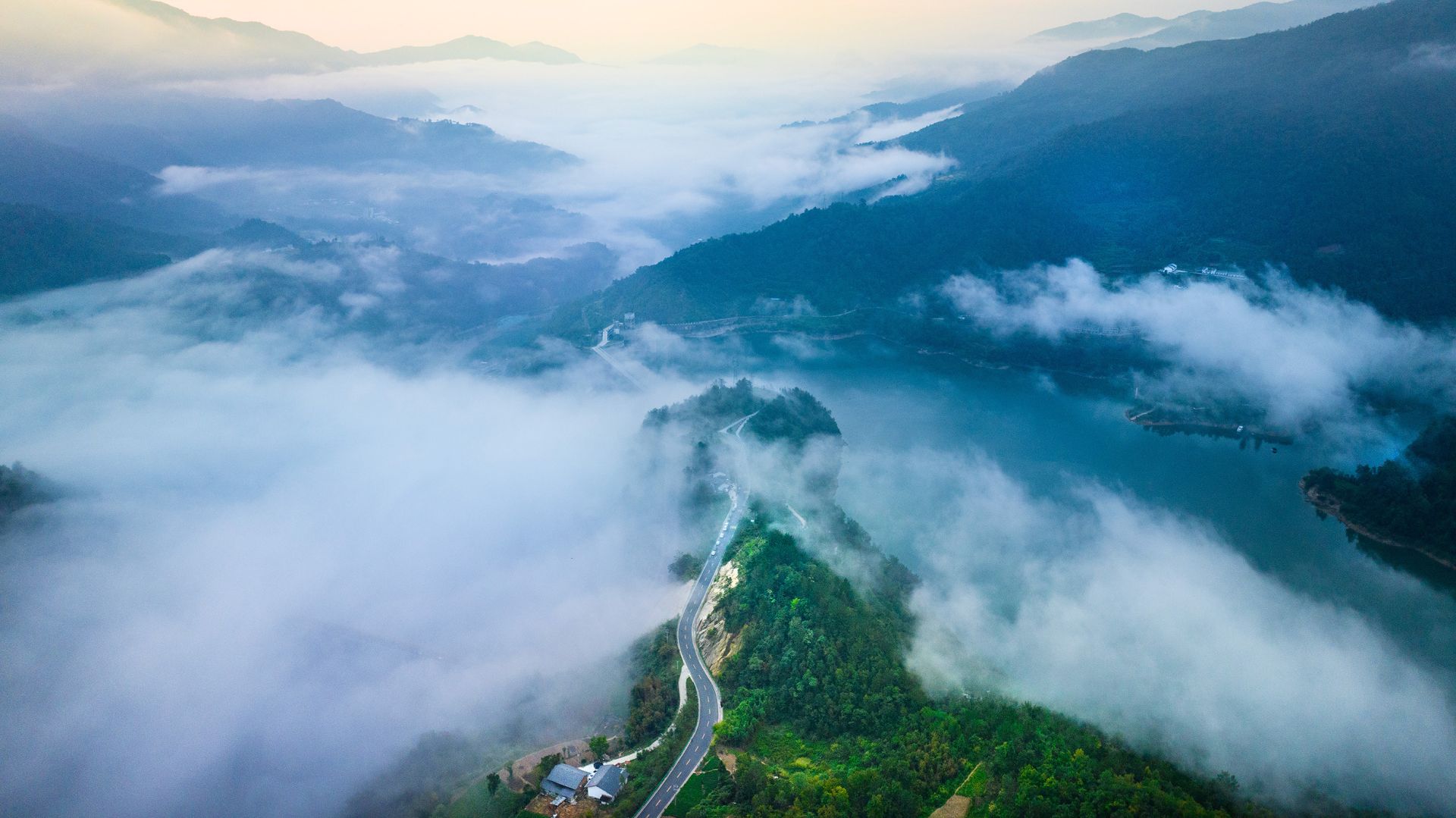因水库涵养水源,加之山上树木繁茂,一年四季皆有云雾,沿途景点在云雾中显得更加缥缈,一路山水一路景,蓬莱仙境在其中。(颜义众 余登明)