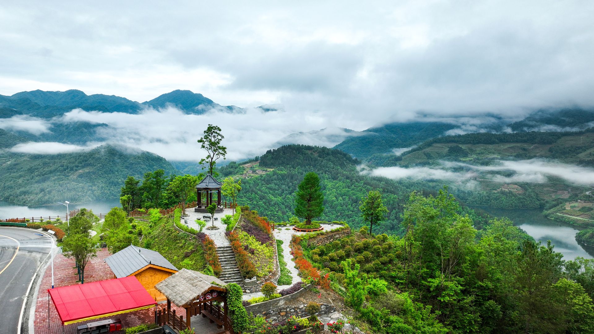 近年,该乡运用共同缔造理念,将黄花沟片区景点祖师岛、罗汉寨、宝龙岗、财神台等分散景点串成一片,形成一个一线串珠的整体美景融入山水之中。黄花沟里翠欲滴△亭台看云亦成景△路边小景可观云△